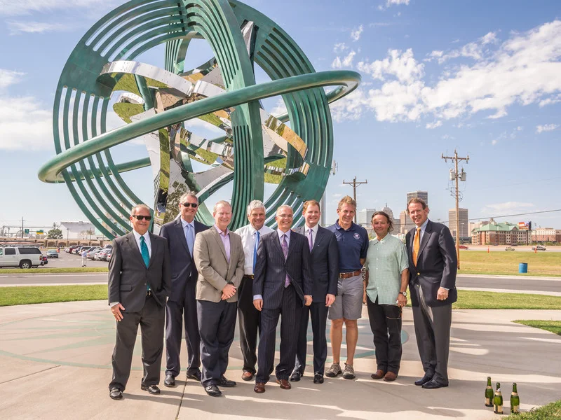 Leadership Oklahoma City, Inc. made a gift of Compass Rose, a sculpture by noted artist Owen Morrel, to the City of Oklahoma City in October 2013. The 25 foot spherical sculpture, funded in large part by a grant from the Inasmuch Foundation, serves as the primary art piece for the Oklahoma City Boathouse District. Its design reflects its nautical surrounding both in theme and in its mirrored surfaces of polished stainless steel.